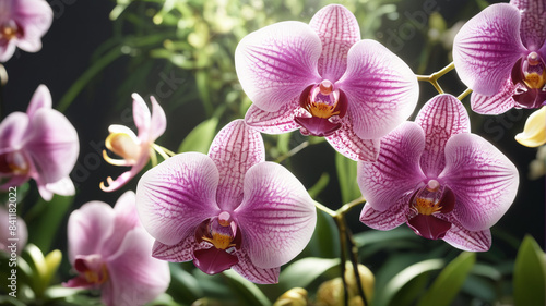 Fototapeta premium Botanical Symphony: Blooming Orchids, Dappled Sunlight, Fresh Fragrance,...