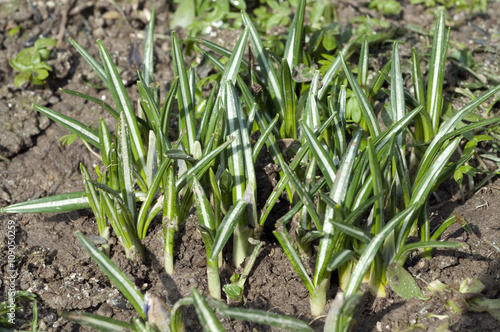 Fototapeta premium Botanischer; Krokus; Crocus; sativus; Keimling, Sproessling