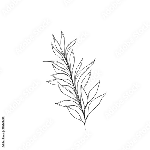 © littlemagic, Fototapeta premium botany tattoo sketch - beautiful twig plant. Botanical element template for graphic design, wedding decor, textiles, souvenir gift, stationery print