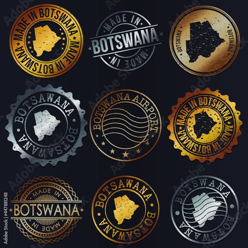 Naklejka premium Botswana Business Metal Stamps. Gold Made In Product Seal. National Logo...