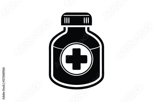 © fatimatz, Obraz premium Bottle Icon with Cross Symbol in Black on Transparent Background Design