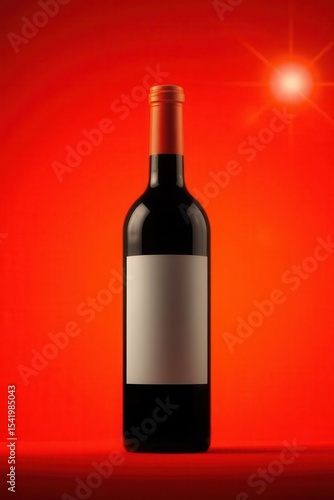 Fototapeta premium Bottle of red wine against vibrant red background with blank label, ready for personalized branding.