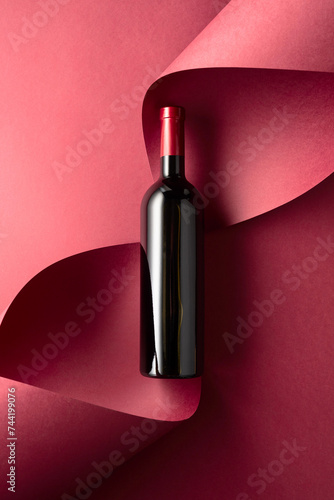 Fototapeta premium Bottle of red wine on a red background.
