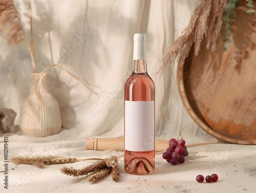 © Valentin, Naklejka premium Bottle of wine mockup, on boho background