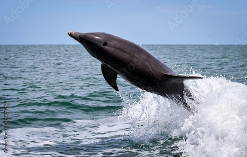 Fototapeta premium Bottlenose Dolphin jumping out of the ocean water.