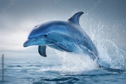 © Iftikhar alam, Fototapeta premium Bottlenose dolphin leaps joyfully from ocean waves at dawn showcasing its playful nature