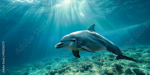 © Maestro, Fototapeta premium Bottlenose Dolphin Swimming in Clear Blue Ocean Waters