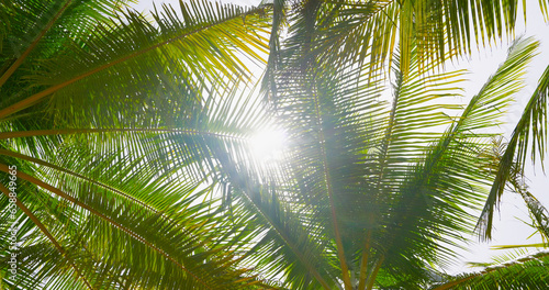 © BUDDEE, Fototapeta premium bottom palm coconut tree with sunshine