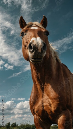© claudunia, Fototapeta premium Bottom view of a horse against the sky.