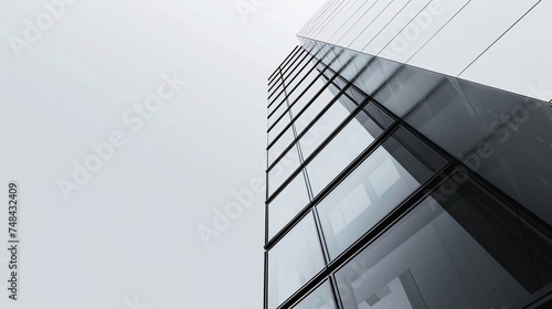 © Dashbow, Fototapeta premium Bottom view of modern skyscraper. Business concept of successful industrial architecture.