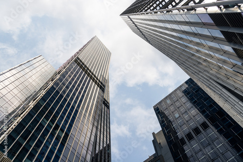 © leungchopan, Naklejka premium Bottom view of the office tower