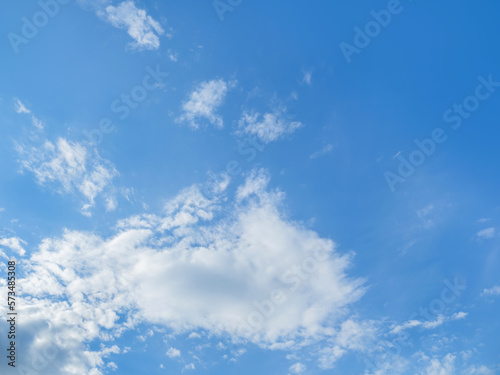 Obraz premium Bottom view on blue sky with fluffy clouds. Sunny day with good weather. Natural background.