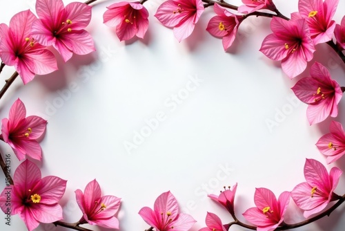 © Prasert, Fototapeta premium Bougainvillea frame mockup Delicate pink flowers, vibrant twigs, seamless design , mockup, backdrop