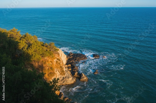 © Giovanni, Fototapeta premium Boulder surrounded by foliage overlooking the ocean