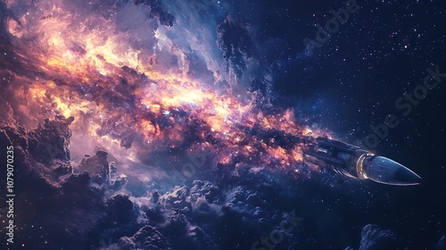 Fototapeta premium Boundless Cosmic Voyage Abstract Space Rocket Surging Through Swirling...