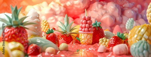 © Thipphaphone, Fototapeta premium Bountiful Assortment of Vibrant Tropical and Exotic Fruits on Rustic Wooden Background