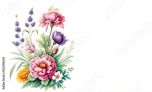 Fototapeta premium bouquet mixed flowers on white background watercolor painting