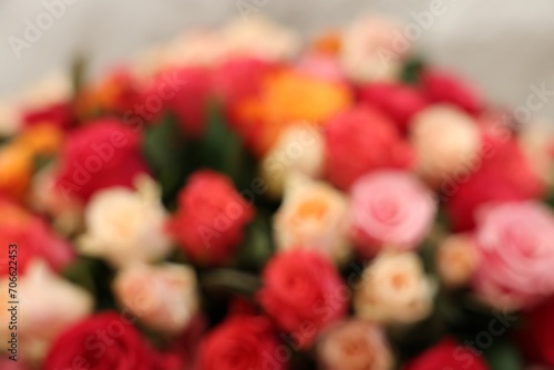 Fototapeta premium Bouquet of beautiful colorful roses, blurred view