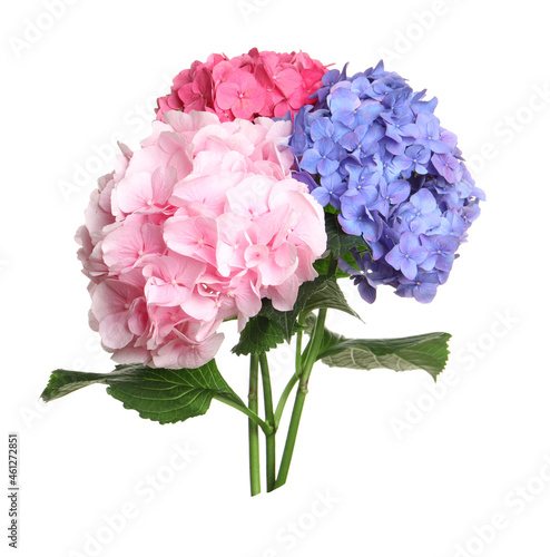 Fototapeta premium Bouquet of beautiful hortensia flowers on white background