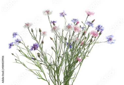 © New Africa, Fototapeta premium Bouquet of beautiful wildflowers isolated on white