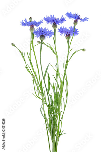 © domnitsky, Fototapeta premium Bouquet of blue cornflowers over white background