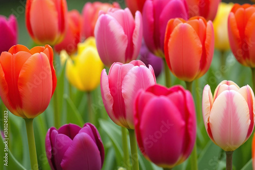 Fototapeta premium bouquet of colorful tulips in a vase on a white background