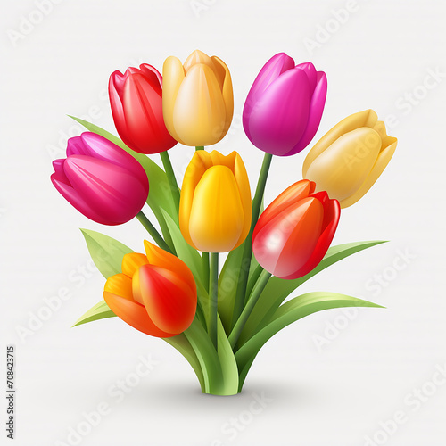 © Tata, Obraz premium Bouquet of colorful tulips on white background. Vector illustration.