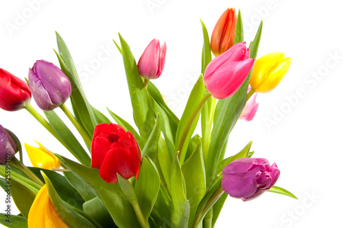 © Sandra van der Steen, Naklejka premium bouquet of colorful tulips over white background