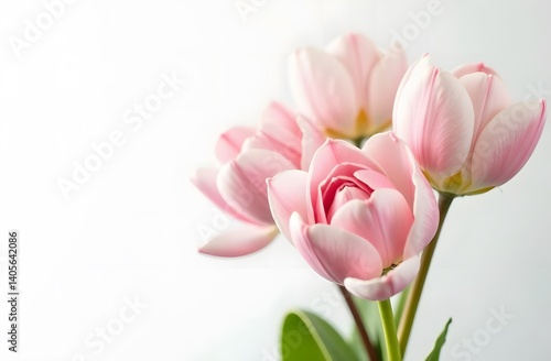 Fototapeta premium Bouquet of delicate pink flowers on a white background with space for text