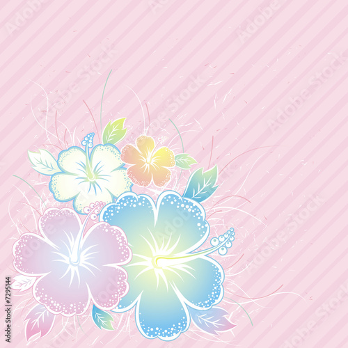 © sunnyfrog, Naklejka premium bouquet of hibiscus on pink background