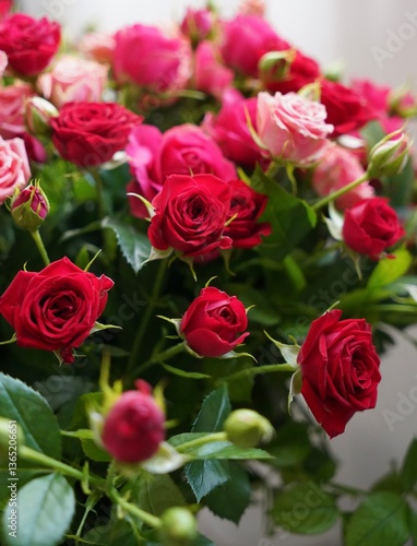 Obraz premium Bouquet of pink and red roses.