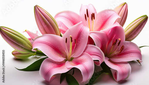 © Keira, Fototapeta premium bouquet of pink lilies on a white background