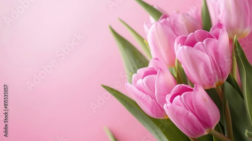Fototapeta premium Bouquet of pink tulip flowers with space for text creating a floral backdrop
