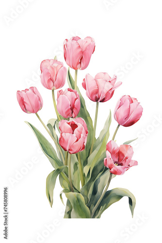 © Tony A, Fototapeta premium Bouquet of Pink Tulips Watercolor Illustration
