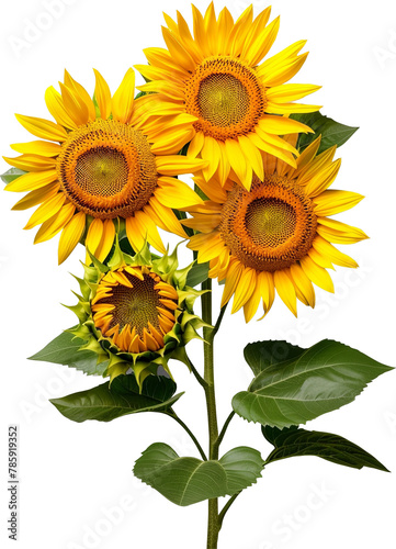 © CassiOpeiaZz, Fototapeta premium Bouquet of sunflower flower floral stalk plant with leaf leaves isolated cutout on transparent background.