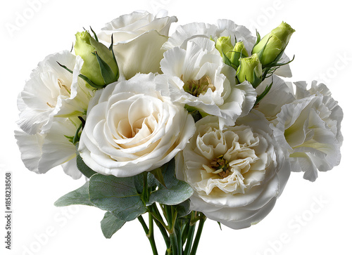 Obraz premium Bouquet of white roses and eustoma flowers isolated