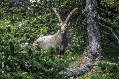 Fototapeta premium Bouquetin dans le Parc Naturel Régional du Vercors au printemps, Rochers du...