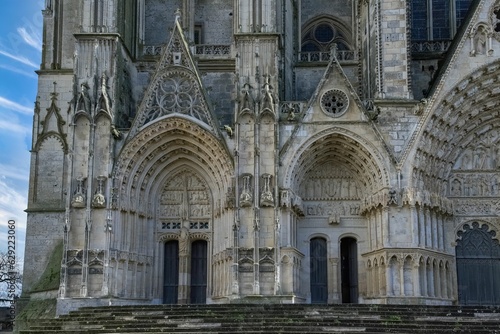 Naklejka premium Bourges, medieval city in France, the Saint-Etienne cathedral, main entry...
