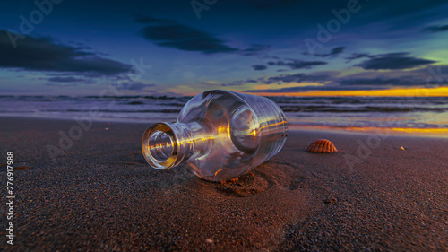 © ODIN Daniel, Obraz premium Bouteille échouée sur la plage.