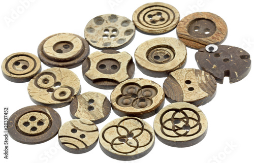 © Unclesam, Fototapeta premium boutons originaux ethniques noix de coco fond blanc