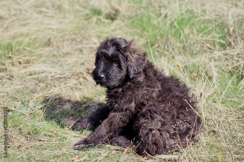© SuperStock, Fototapeta premium Bouvier puppy sitting on grass