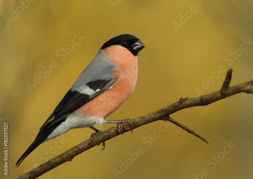 © Claude, Fototapeta premium Bouvreuil pivoine dans le jaune de l'Automnes!