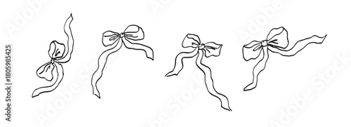 Obraz premium Bow hand drawn with contour lines on white background. Vector illustration. Whimsical romantic Valentine's Day print