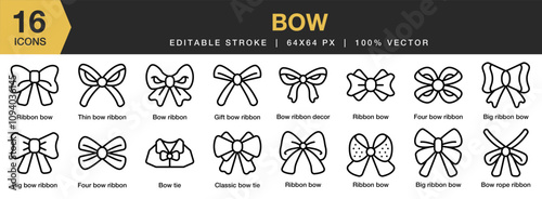 Fototapeta premium Bow icon set. Editable Stroke Icon Collection. Includes Ribbon, Bow,...
