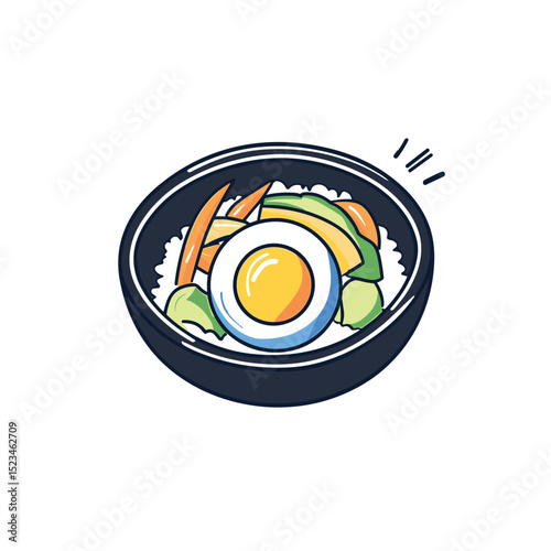 © Khaula_Annasya, Fototapeta premium Bowl dish rice egg with avocado and carrot