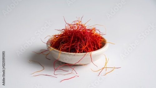 © ai tekno koncept, Fototapeta premium bowl filled with saffron threads on a white background.
