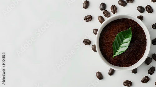 Obraz premium Bowl of ground coffee and beans isolated on white background