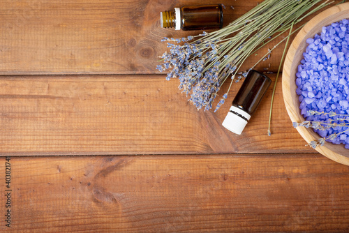 © Маргарита Медведева, Obraz premium bowl of lavender bath salt and massage oil