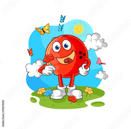 © dataimasu, Obraz premium bowling ball pick flowers in spring. character vector