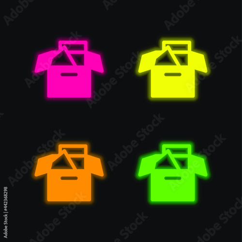 © LIGHTFIELD STUDIOS, Obraz premium Box Filled four color glowing neon vector icon